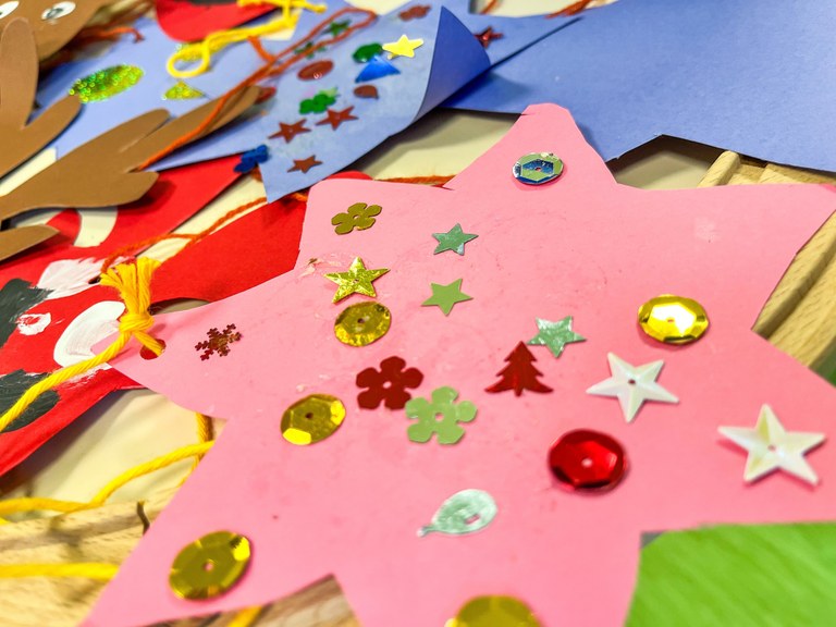 Selbstgebastelter Baumschmuck verschönert die Verwaltung